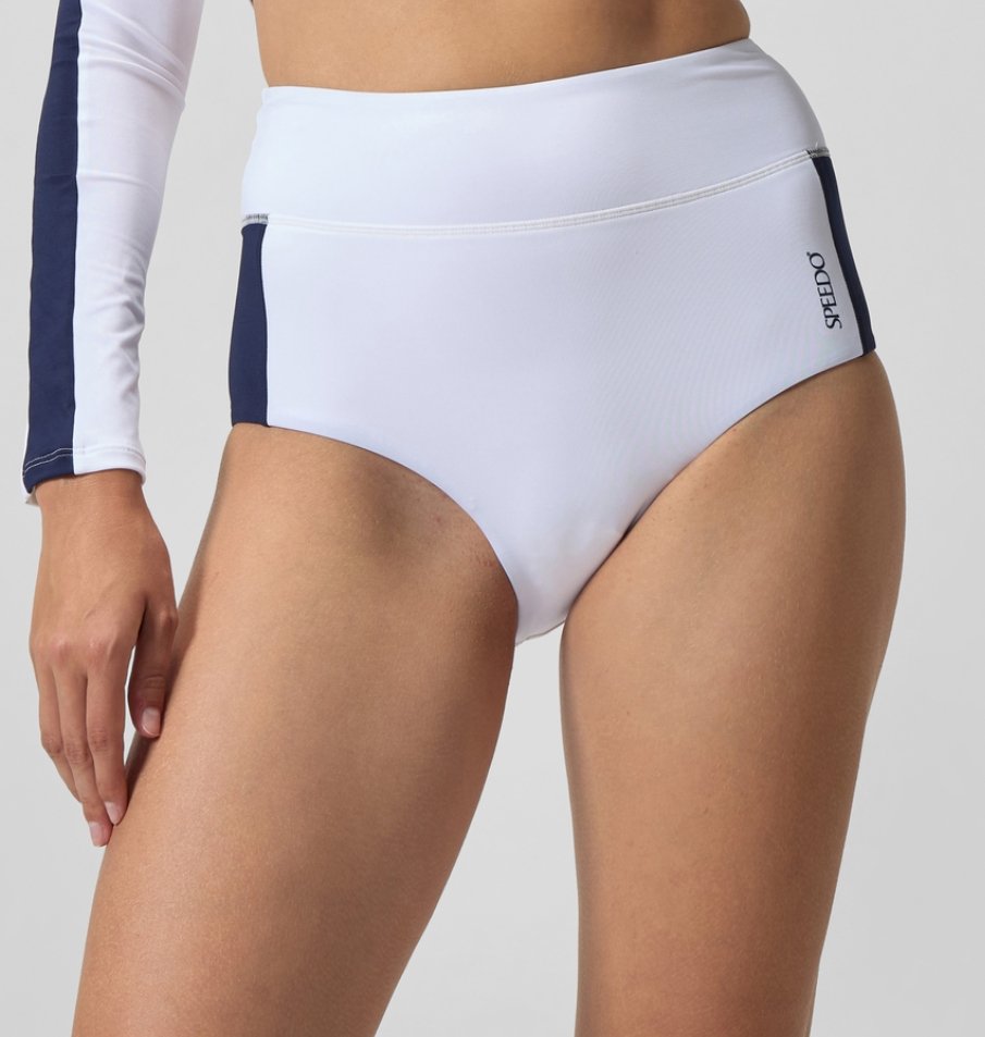 Old-school styling, fresh new vibe. With their retro good looks, our white colour-block bikini bottoms have an eighties flavour inspired by the Speedo design archives. The mix-and-match design is cut from quick-drying, chlorine-resistant fabric. UPF50+ blocks the burn. Pair with one of our mix-and-match crop tops, available to buy separately. Made From Part Recycled Materials with chlorine resistance and quick dry fabric with a soft hand feel Block the Burn UPF 50+ Fully Lined