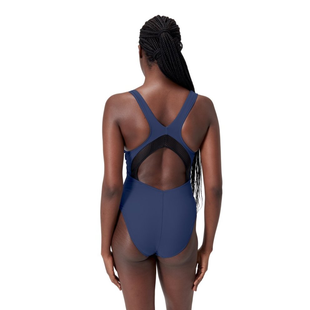Look the part during your workout wearing our athletic Scoop swimsuit. Cut in a fitness-focused fit with a stylish mesh panel on the back, it includes supportive straps for improved mobility. A shelf bra with removable cups offers bust support so you can focus on your swim. Regular workouts are no match for our new ultra-chlorine-resistant fabric. It includes XLANCE® technology with two-way stretch for a long-lasting performance fit. Made in part from recycled plastic bottles - the Repreve® Polyester yarn in this fabric is made from 100% post-consumer waste.