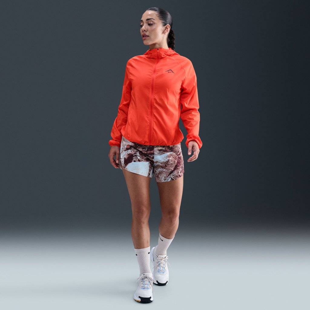 Nike Trail has the features you need to make connecting with your surroundings easier, even in dynamic conditions. Ultra-lightweight with a water-repellent finish, this packable jacket is designed to help keep you comfortable no matter where your path takes you. Pack and Go Need to shed a layer? Pack the jacket into its own pocket for compact carrying. A front zip pocket is large enough to hold most phones. Stay Dry Water-repellent finish helps keep you dry in wet weather. A bungee on the hood lets you cinch out the rain. More Benefits: