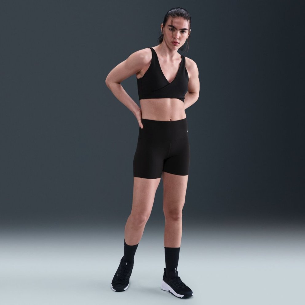 Move easy in this wrap style bra. Its light support provides a gentle hold with plenty of freedom. A sleek breathable liner combines with midweight, peachy-soft fabric that dries quickly and stretches with you. Benefits: