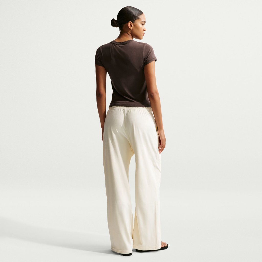 Þessi bolur er úr mjúku, teygjanlegu prjónuðu efni og hannaður fyrir þægindi allan daginn.Sniðið liggur mjúklega að líkamanum og örlítið styttri lengdin skapar fágaða skuggamynd sem er auðvelt að stíla, hvort sem