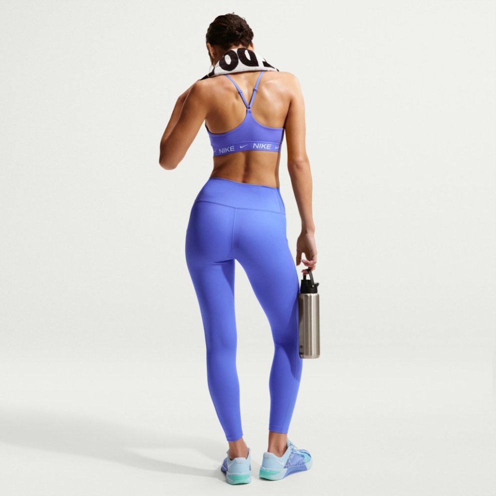 Láttu ekkert standa í vegi fyrir því að vera þú sjálf/ur í þessum fágaða og lágprofíla íþróttabrjóstahaldara. Léttur stuðningur veitir mjúka og þægilega aðhald með miklu hreyfifrelsi – fullkomið fyrir léttar æfingar eða þægindi allan daginn. Slétt og fljótþornandi efni gefur hreint yfirbragð svo þú getir borið hann á þinn hátt. Þunnar axlarólar eru auðveldlega stillanlegar að aftan til að laga sniðið nákvæmlega að þér. Viltu meiri þekju og létta mótun? Sérhannaðir púðar renna inn að neðan og haldast vel á sínum stað bæði í notkun og þvotti, fyrir áreiðanlega og slétta lögun. Indy-brjóstahaldarinn býður upp á val – hvort sem þú vilt léttan stuðning fyrir daglega notkun eða meiri aðhald í öðrum útgáfum safnsins. Nike Dri-FIT tækni flytur svita frá húðinni svo hann gufi hraðar upp og hjálpar þér að halda þurru og þægilegu, á meðan mjúkt jacquard-brjóstband liggur þétt að húðinni án þess að þrengja.