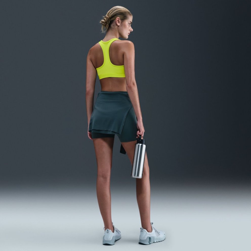 You're on the move. Your padding shouldn't be. This Swoosh bra's sewn-in pads stay in place so you can work hard without worrying about them shifting or folding. Great for training workouts and dance classes, medium support gives you a snug hold that helps keep everything in place. Plus, the sweat-wicking, adaptive material quickly recovers its shape so you can stay comfortable throughout your workout.