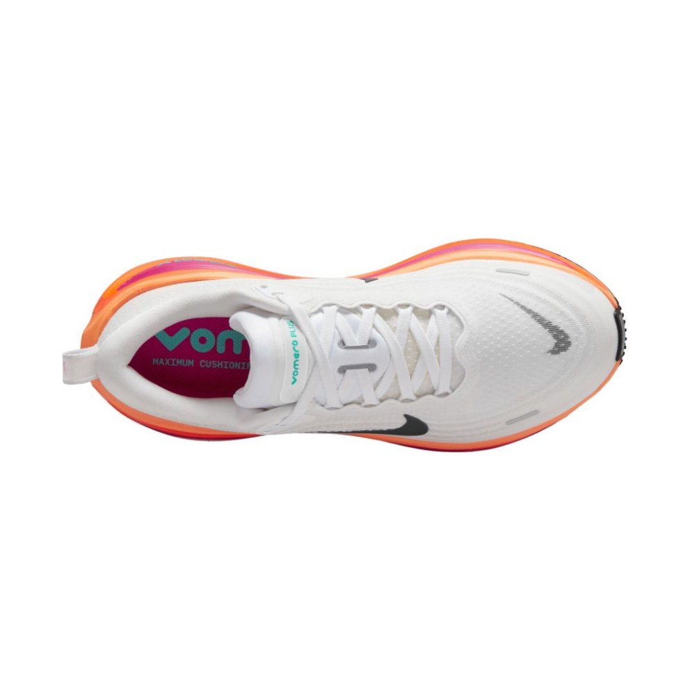 Há hæð af móttækilegri, léttari froðu veitir dempun á næsta stigi. Vomero Plus býður upp á hámarks þægindi í daglegum hlaupum með fullri lengd af ZoomX-froðu, móttækilegustu froðunni á markaðnum. Efrihluti úr hönnuðu mesh efni er mjúkur og andar vel og tryggir þægilega og aðlögunarhæfa fitu, á meðan ultra-responsive ZoomX-millifarinn skilar hámarks viðbragði Nike og slitsterkt gúmmí í ytri sóla veitir endingargott grip.