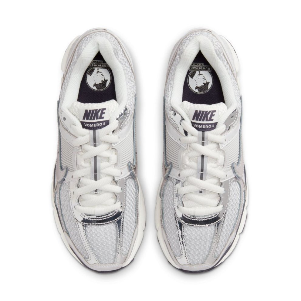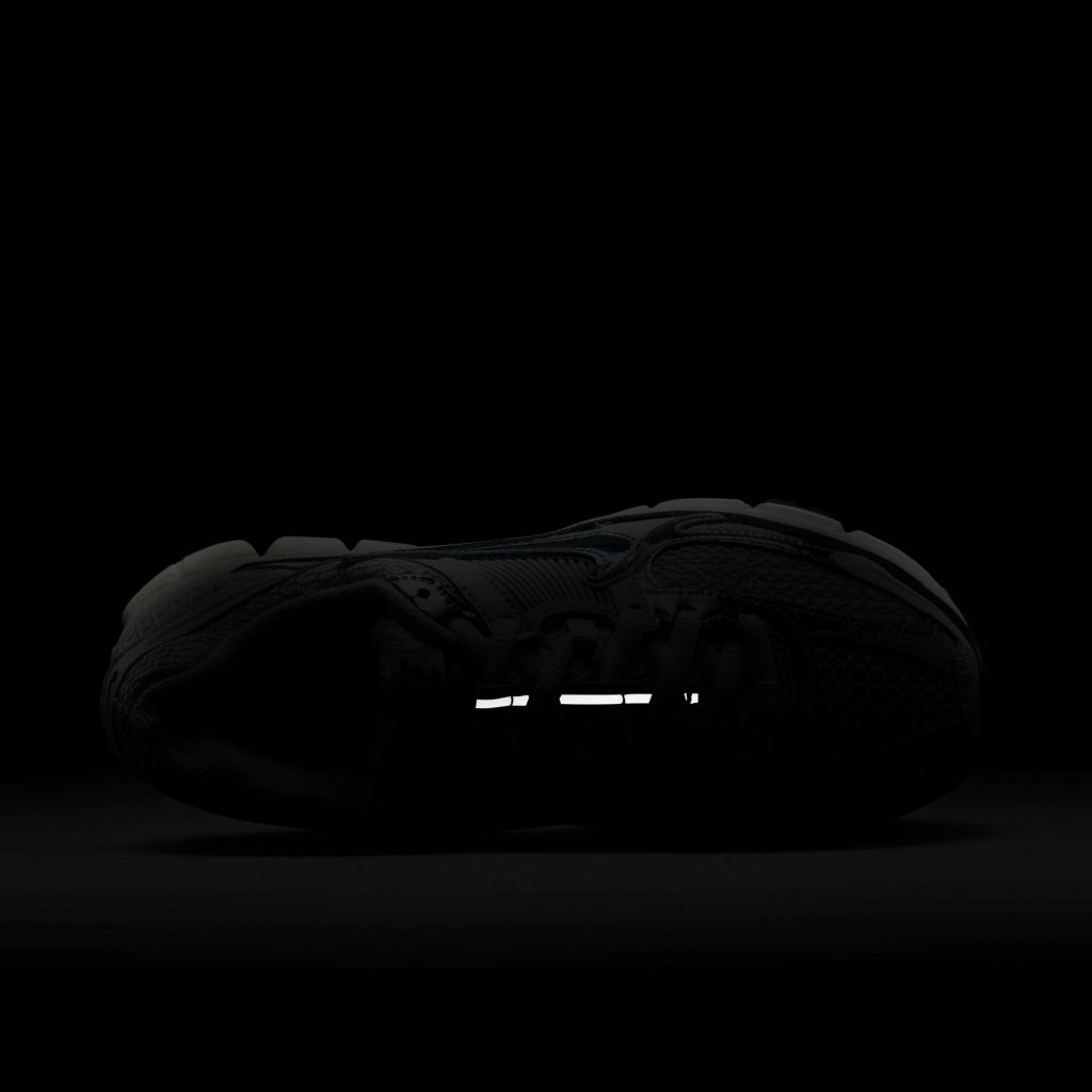 Mótaðu þína eigin leið með Zoom Vomero 5 skónum sem sameinar marglaga hönnun, dýpt og auðveldan stíl. Þessi útgáfa sækir innblástur í vintage útlit og er skýr tilvísun í hlaupaskó snemma á 21. öldinni. Yfirbyggingin er úr blöndu af ekta og gervileðri sem skapar endingargott og marglaga útlit, ásamt netefni og loftopum við hæl sem halda skónum léttum og vel loftræstum. Snögg og svörunarmikil Zoom Air-loftpúðun veitir létta tilfinningu frá jörðu og kraft í hvert skref, á meðan plastgrind á hliðunum eykur stuðning og stöðugleika. Gúmmí-ytri sóli tryggir traust grip og góða endingu. Hönnuninni er lokið með málmkenndu Swoosh-merki og endurskinshönnunaratriðum sem setja punktinn yfir i-ið.