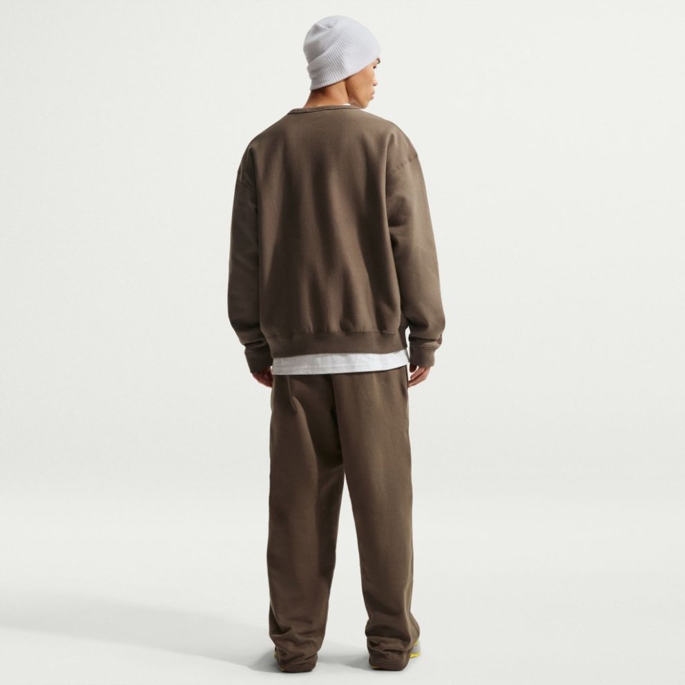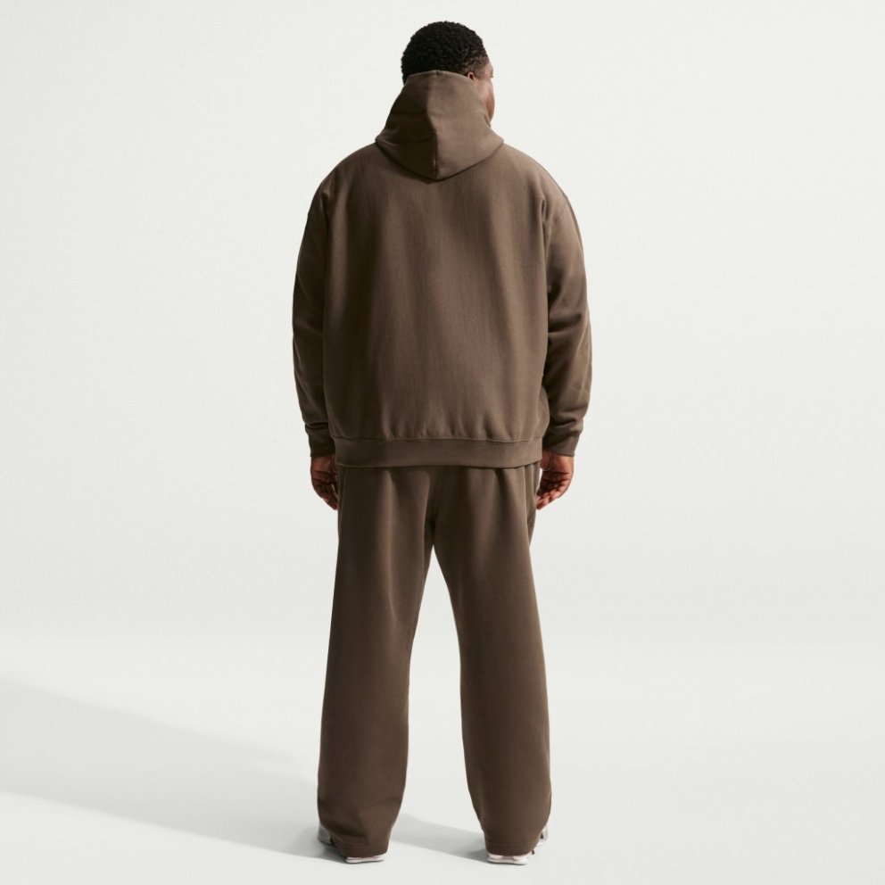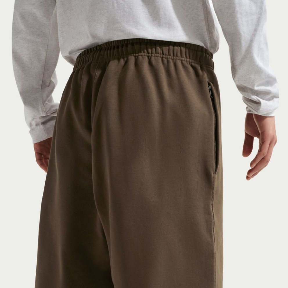 Hlýjar og vel mótaðar buxur úr þungri, burstaðri flís sem er mjúk og notaleg að innan en slétt að utan. Laust snið og opinn skálmendi skapa afslappað og þægilegt yfirbragð sem hentar vel bæði til daglegrar notkunar og slökunar. Buxurnar eru rúmgóðar um mjaðmir og læri og veita mikla hreyfigetu. Teygjanlegt mittisband með innri reim gerir þér kleift að stilla sniðið að þínum þægindum, á meðan opnir skálmendar falla náttúrulega yfir skóna. Útsaumað Nike Swoosh-merki setur sportlegan og fágaðan svip á hönnunina. Upplýsingar um vöruna: 84-85% bómull, 15-16% pólýester Vasar: 100% bómull,