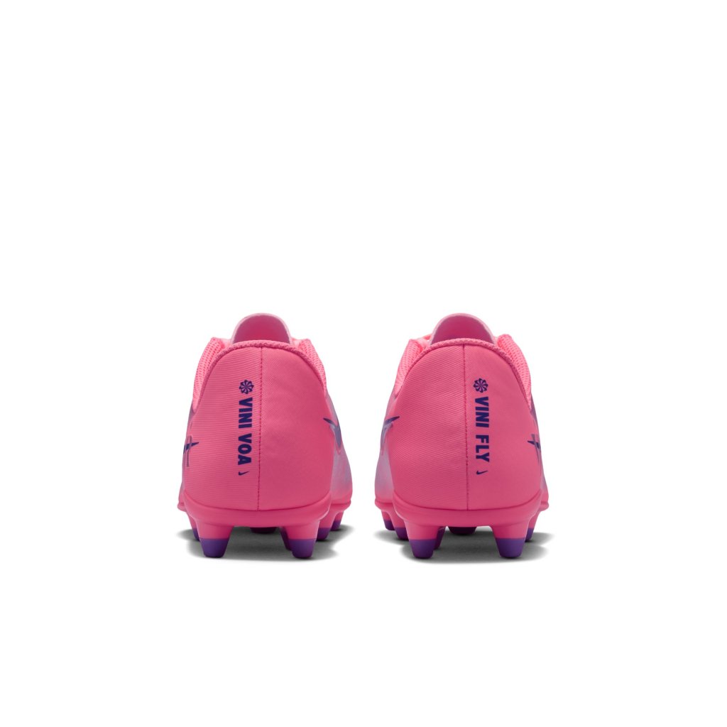 When you're on the field, you want to be noticed—just like Vini Jr. Inspired by the flair he brings to every match, these eye-catching cleats are made with grippy synthetic leather to ensure they're the last thing defenders see as you blow past. Behind the design The outer metallic layer celebrates Vini Jr.’s on-field flair and lifelong love of brightly coloured cleats. The second layer is all about the work he put in behind the scenes to earn the right to wear cleats like these. Soft touch Synthetic leather has small textured details that provide grip for better ball control when dribbling at quick speeds. Fast Traction Plastic plates with moulded studs are designed to work on real- and artificial-grass pitches. It's versatile for athletes who must switch between surfaces. Easy fit A comfortable lining wraps your foot for a natural,