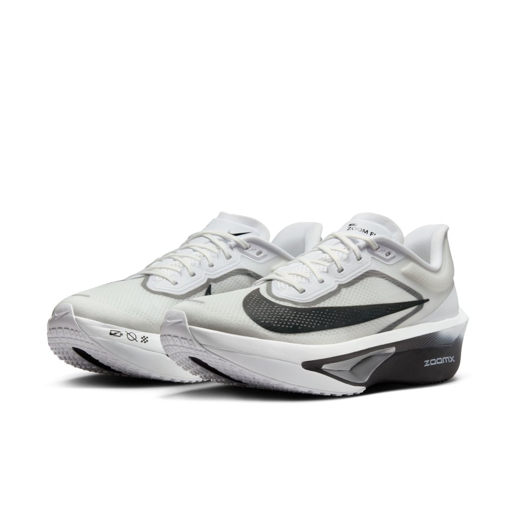 The Zoom Fly 6 is with you every step of your run. Lighter than the Zoom Fly 5, its responsive ZoomX foam adds energy return to each stride, while a carbon-fibre plate helps propel you to the finishing line. Benefits: