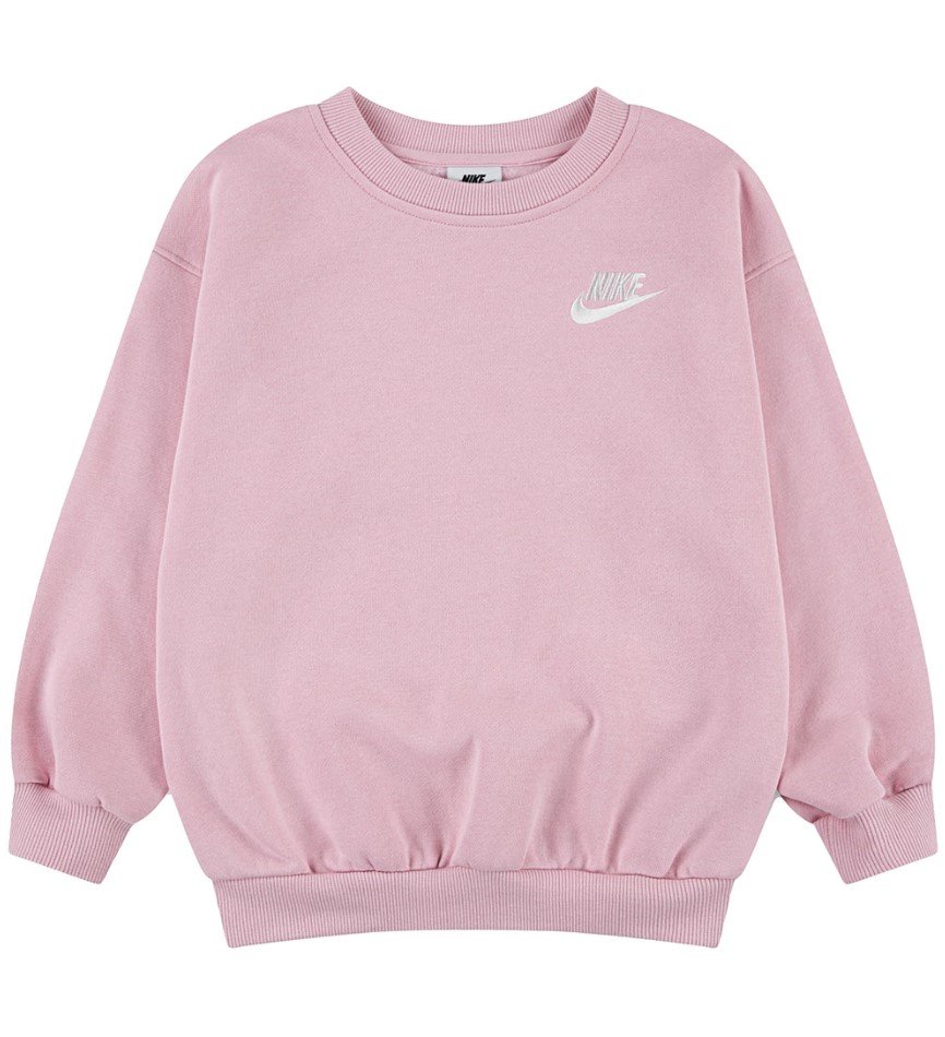 Falleg Nike peysa með, saumuðu merki á vinstri brjóstkassa. Peysan er með afslöppuðu og víðu sniði, hringlaga hálsmáli og löngum ermum.