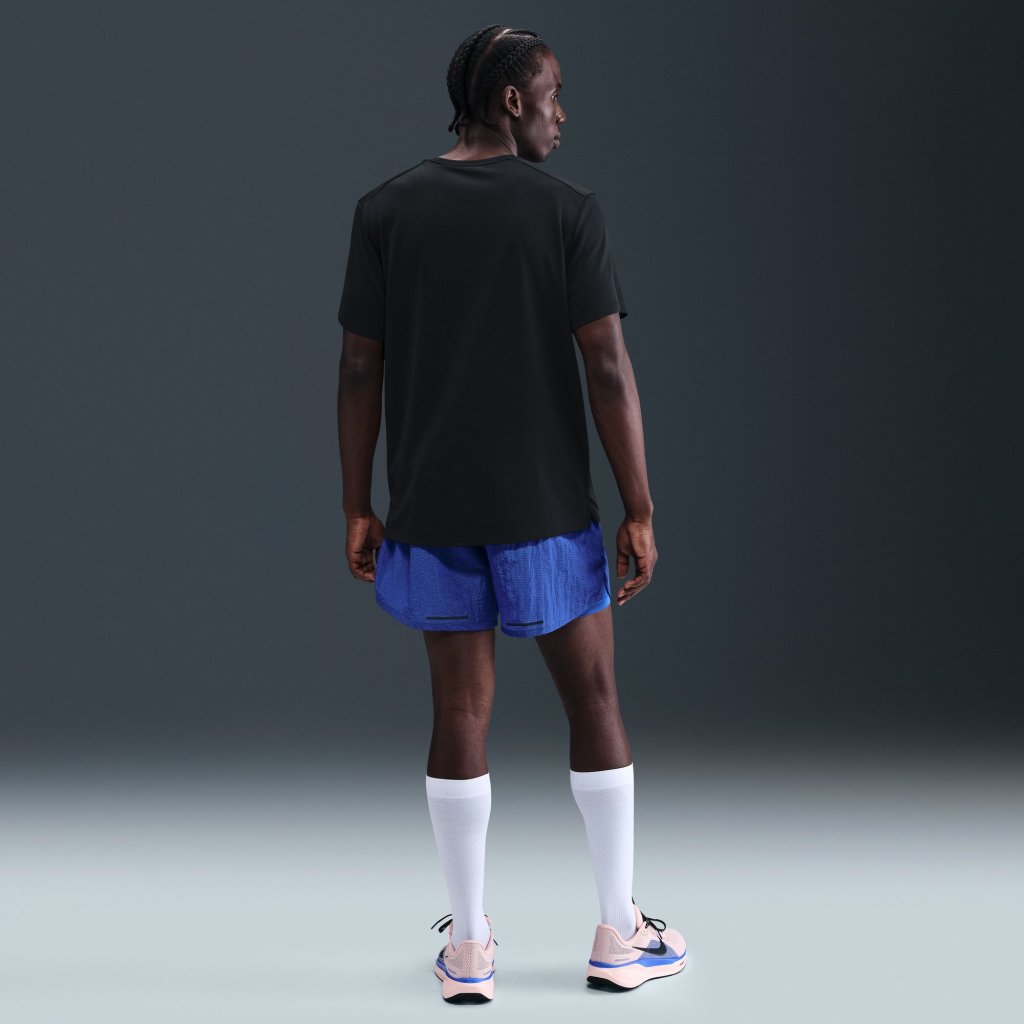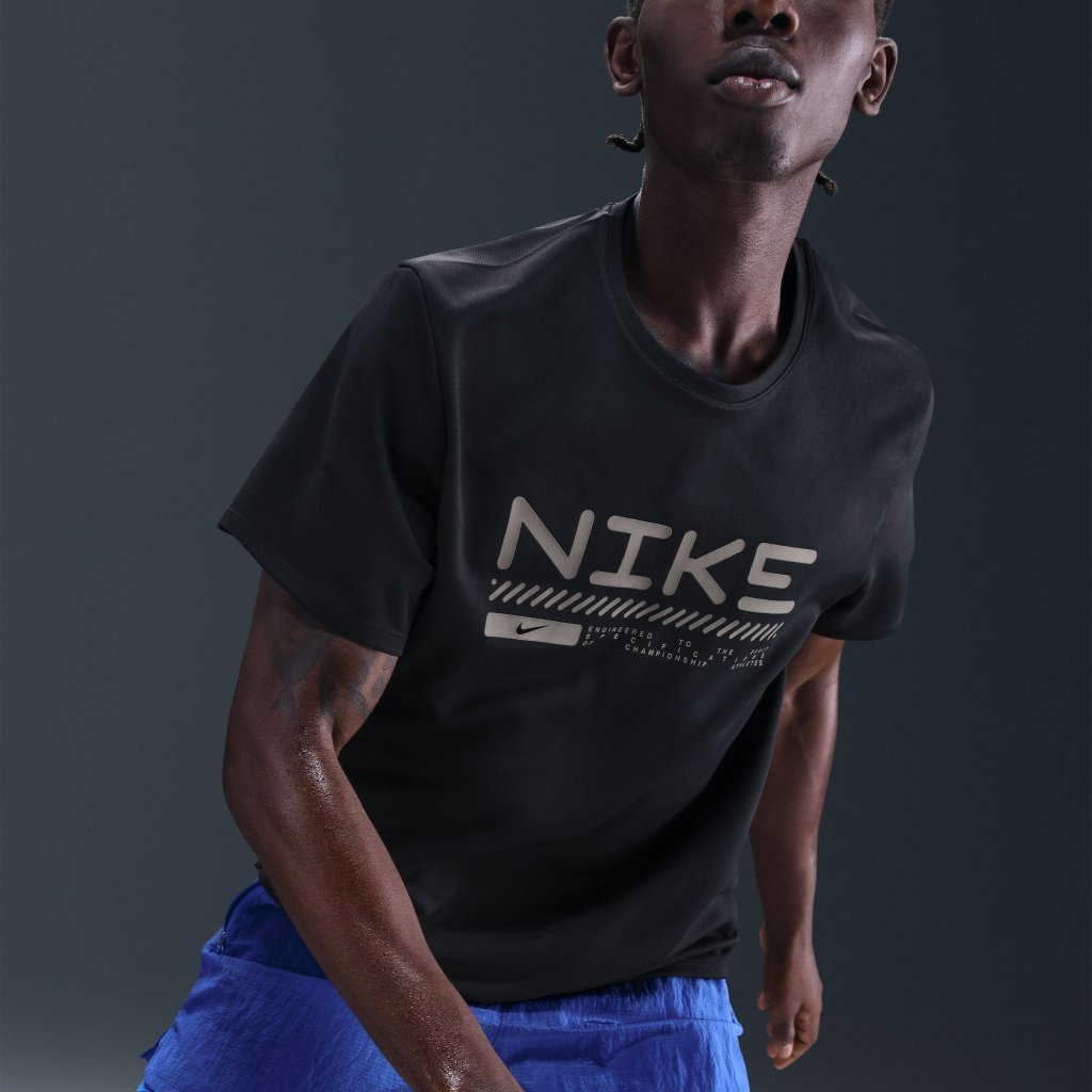 Run your route with an extra pop to your path. This light and breathable Miler top wicks sweat and is updated with bold reflective design graphics.