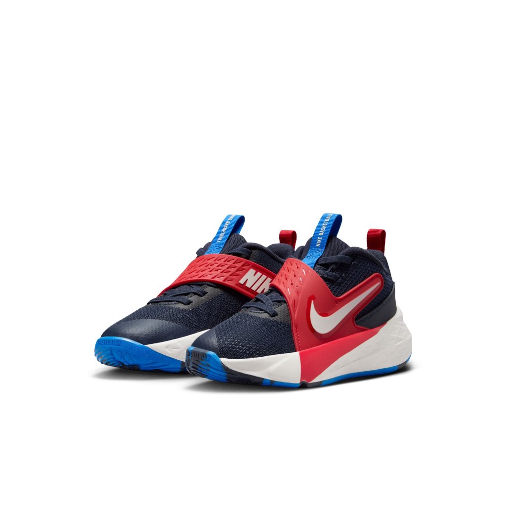 The Nike Team Hustle D is made for kids who love to hoop. Stretchy elastic laces and a strap closure make it easy for kids to secure their fit. Underfoot, plush foam and a durable rubber outsole give them the cushioning and grip they need to confidently play on outdoor courts. Easy to secure Stretchy elastic laces pair with a hook-and-loop strap to help give kids a secure, contained fit. We added oversized loops to the tongue and heel to help make these easy to pull on. Tarmac ready A flexible, full-length rubber outsole offers the durability and grip kids need to bring their best on outdoor courts and playgrounds. Plus, soft foam in the midsole cushions every step and jump they take. Keep cool Breathable mesh in the upper helps keep little feet from overheating. Product details: