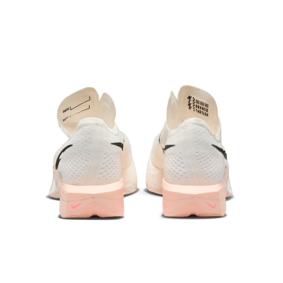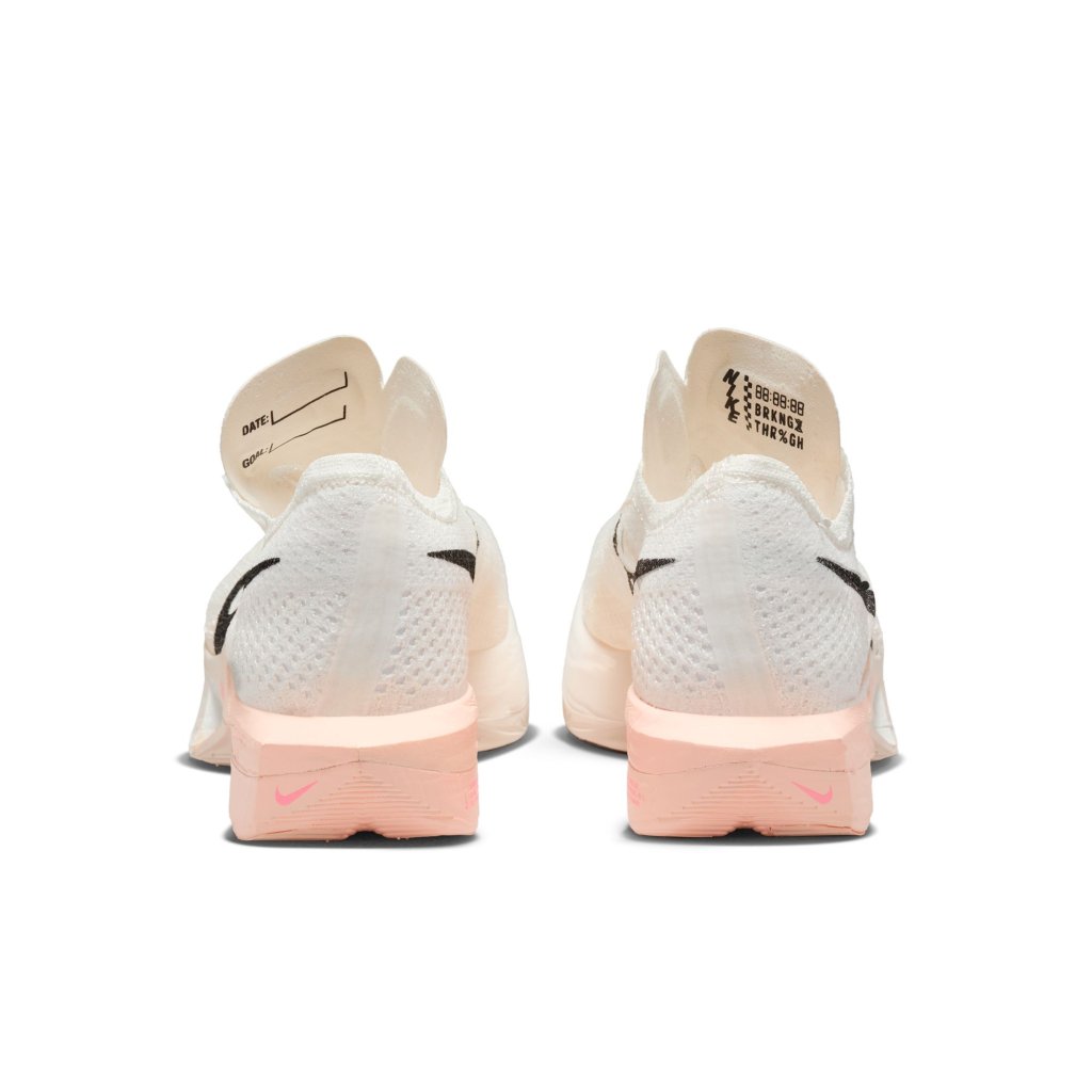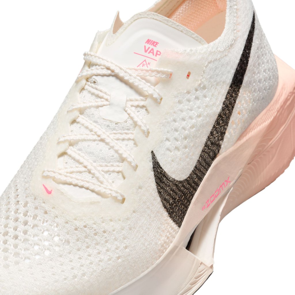 Catch 'em if you can. Giving you race-day speed to conquer any distance, the Nike Vaporfly 3 is made for the chasers, the racers and the elevated pacers who can't turn down the thrill of the pursuit. We reworked the leader of the super shoe pack and tuned the engine underneath to help you chase personal bests from a 10K to marathon. From elite runners to those new to racing, this versatile road-racing workhorse is for those who see speed as a gateway to more miles and more seemingly uncatchable highs. Propelling you forwards A full-length carbon fibre flyplate provides a stiff and propulsive feel. Speed for miles Nike ZoomX, our most responsive foam, just got a little better. Running from heel to toe, it unlocks even more energy return than before, giving you a springy, bouncy feel. Stable ride See how the midsole bulges out by the heel? We designed it that way to help reduce weight on the inside of the foot to give you a more stable ride. Feel the breeze Specifically selected Flyknit yarns and engineered zones in the forefoot bring a new level of performance to the Vaporfly. Ample breathability around the toes combined with soft, yet supportive yarns deliver our most customised upper for the Vaporfly. The result is a softer, cooler design that contours to your foot. What's new about the Vaporfly 3? An updated thin outsole rubber uses less material without sacrificing durability, which helps reduce outsole weight and thickness. This allows for extra millimetres of ZoomX foam underfoot and a smoother transition through your stride. More benefits: