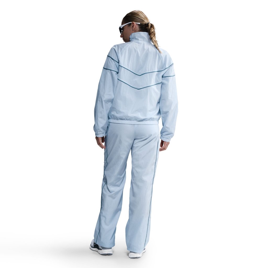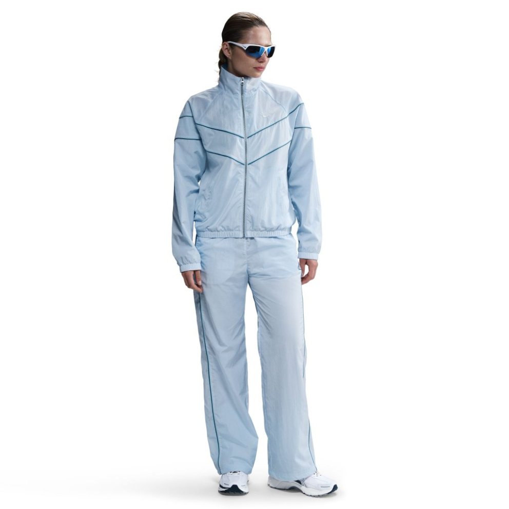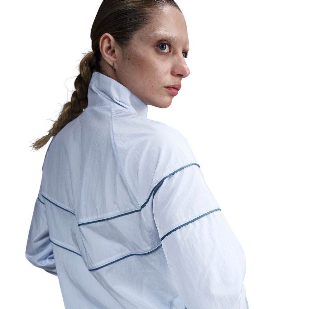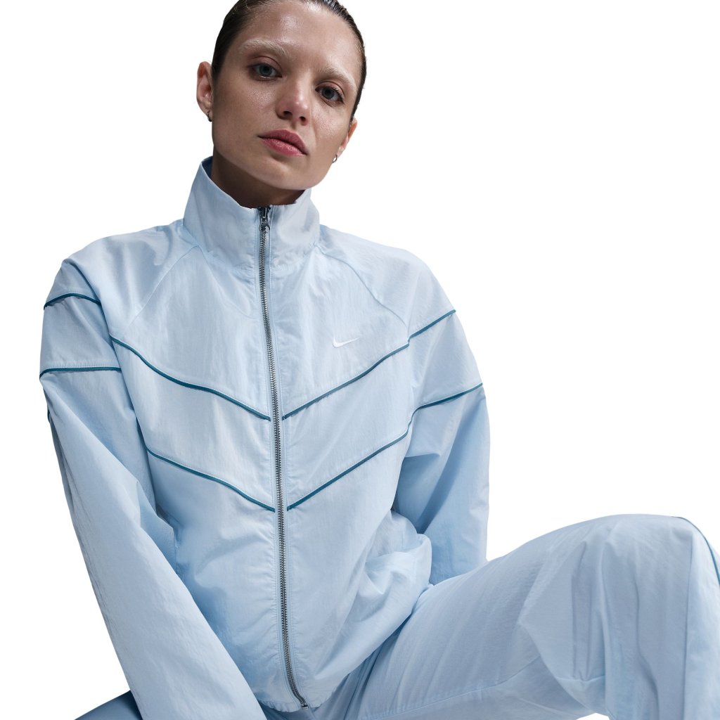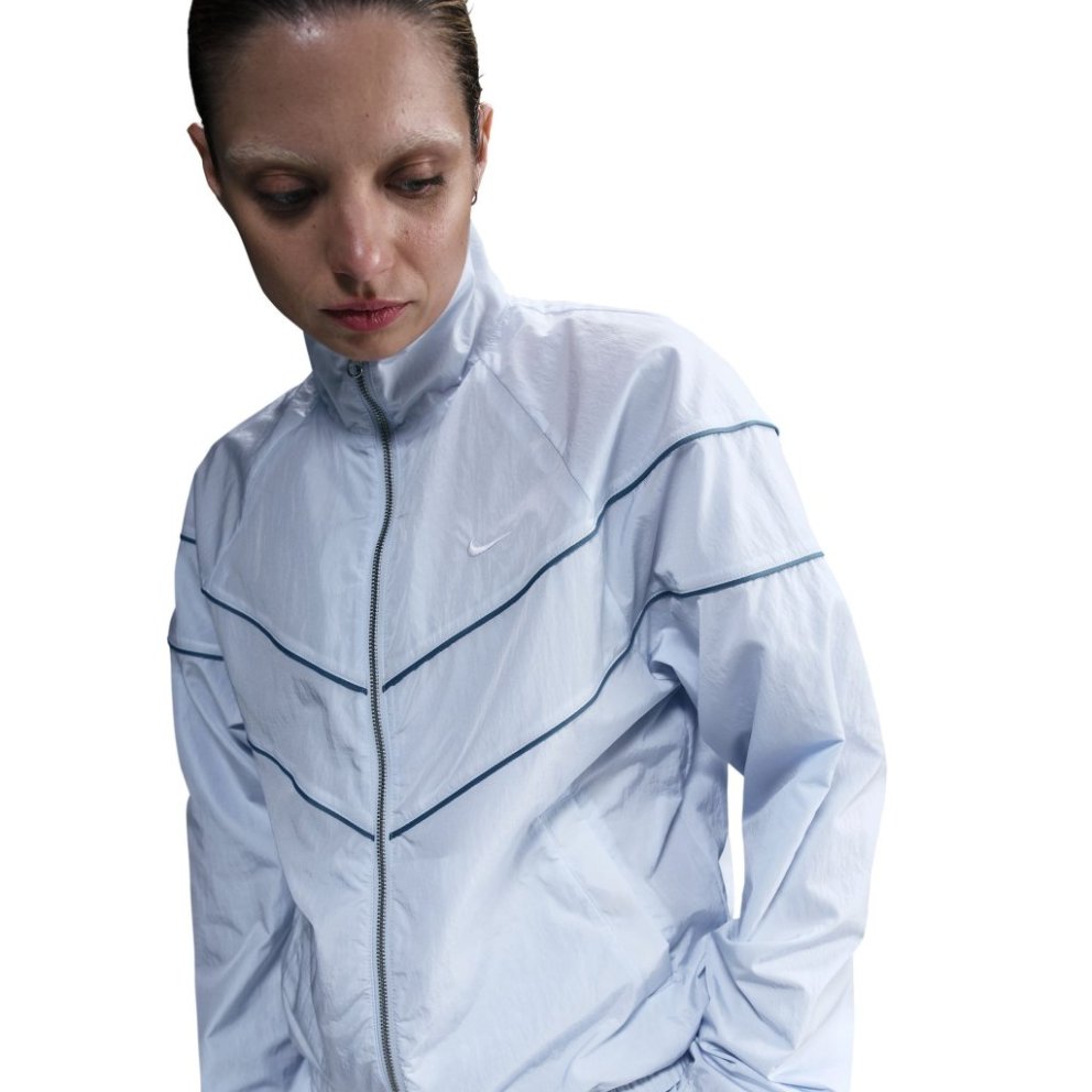 Reaching back to our roots, this roomy jacket's design lines pull inspiration from the original Windrunner. A water-repellent finish and UV technology built into the crinkle-woven fabric help keep you good to go come rain or shine. Benefits: Pockets provide quick storage for keys, phone and cold hands. Sweat-wicking jersey lining in upper body and arms feels soft and comfortable. Water-repellent finish helps keep you dry in wet weather. Product Details: Body: 100% nylon. Lining: 75% polyester/13% cotton/12% rayon. Panels lining: 100% polyester. Embroidered Swoosh logo This product provides UVA and UVB protection from the sun only in the areas covered by the ga