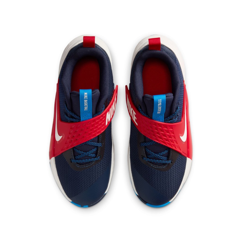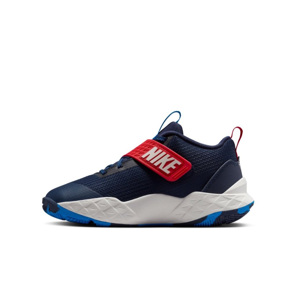 The Nike Team Hustle D is made for kids who love to hoop. Its strap closure system makes it easy to secure your fit fast. Underfoot, plush foam and a durable rubber outsole give you the cushioning and grip you need to confidently play on outdoor courts. Easy to secure Classic laces pair with a hook-and-loop strap to help give you a secure, contained fit. We added oversized loops to the tongue and heel to help make these easy to pull on. Tarmac ready A flexible, full-length rubber outsole offers the durability and grip you need to bring your best on outdoor courts and playgrounds. Plus, soft foam in the midsole cushions every step and jump you take. Keep Your Cool The breathable mesh in the upper helps keep your feet from overheating. Product details: