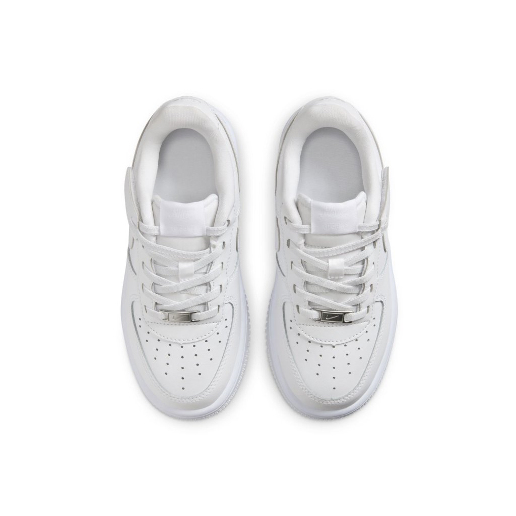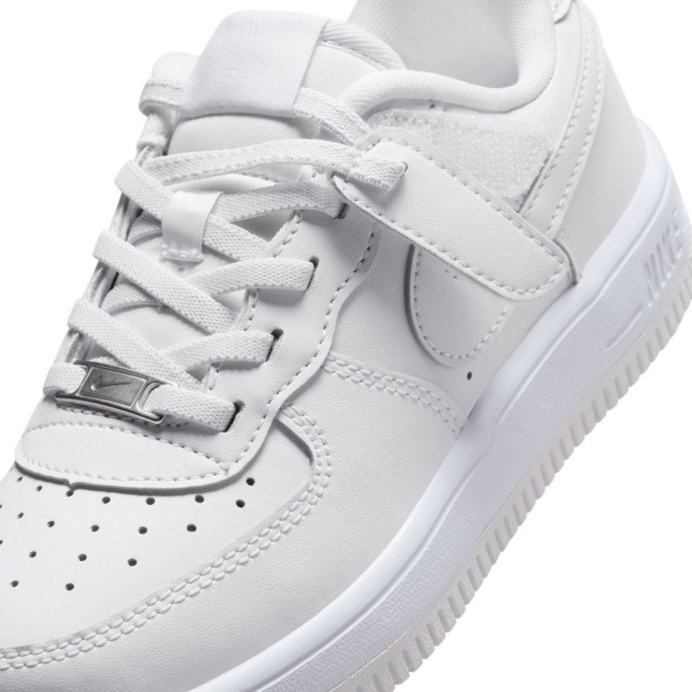 Get out the door fast without struggling with shoelaces. The top lace loops on these sneakers are attached to hook-and-loop straps, helping kids secure their fit fast while still enjoying classic AF-1 style.